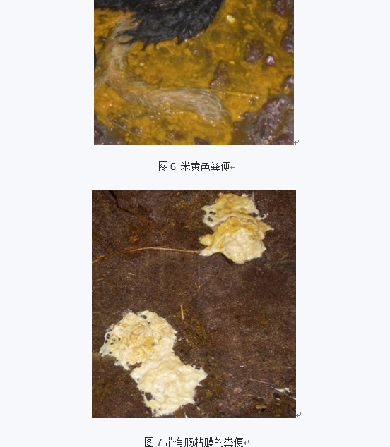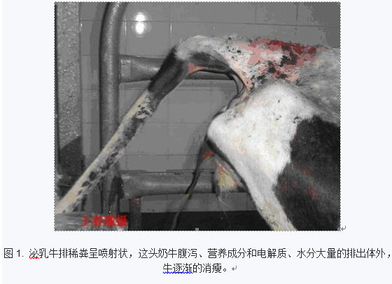 泌乳牛产奶量显著降低。病牛被毛逆立,心率快,严重时肌肉抽搐,痉挛或昏迷,最后因脱水、心力衰竭、死亡。凡腹泻死亡的奶牛,奶牛的肛门上黏附着大量的粪便,非常消瘦。