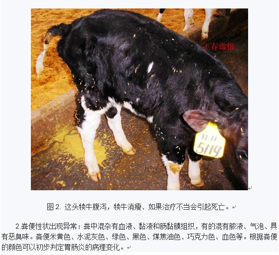 2.真胃右方扭转的病牛,发病率相对比较低,一旦发病,也表现腹泻症状。