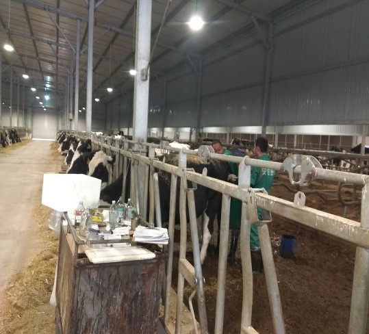 日上午,在岗位专家依托单位石家庄天泉良种奶牛有限公司进行为期一天的高产奶牛体内胚胎生产工作。高产奶牛冲胚