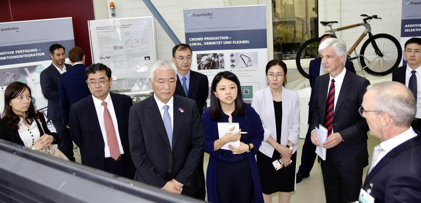 7月10日,科学技术部部长王志刚访问了位于德国柏林的德国弗朗霍夫生产设备与结构技术研究所,与该所所长埃卡特·乌尔曼(Eckart Uhlmann)教授等围绕中德科技合作、“中国制造2025”与德国工业4.0等话题座谈交流,并在乌尔曼所长陪同下参观了研究所的数字联网、数字双胞胎、增材制造、以人为中心的机器人技术等实验室。