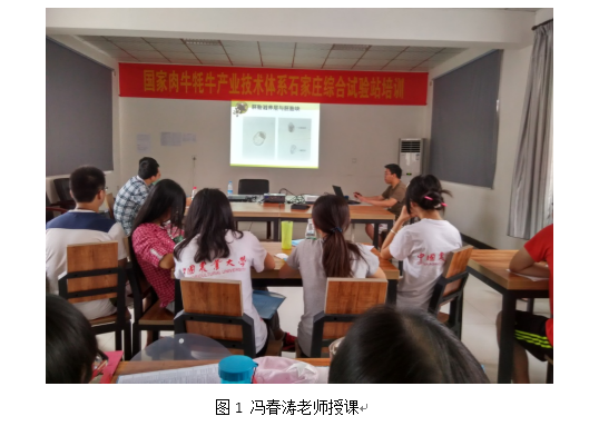 冯春涛老师通过早期胚胎发育特点、胚胎室内操作前准备工作、胚胎质量鉴定方法、胚胎性别鉴定技术、胚胎切割取样操作方法、胚胎分割及其应用、胚胎冷冻保存和解冻等七个方面进行讲解。学生们对胚胎切割取样及性别鉴定表现出极大的兴趣,纷纷提出问题,冯老师就胚胎切割方法和鉴定原理等问题一一进行解答。同时还结合胚胎切割取样视频讲解,让学生们理解更深刻。