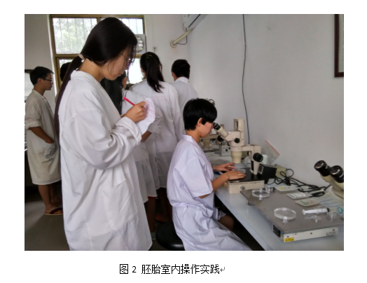 课程讲解结束后,学生们到基地胚胎生产实验室进行实践操作。从胚胎被冲出来到运送来实验室,拣胚胎、胚胎质量鉴定、切割、性别鉴定等,学生们认真学习每个环节,并时刻做好笔记。对于这种及时授课及时现场操作的培训形式,受到学生们一致好评。