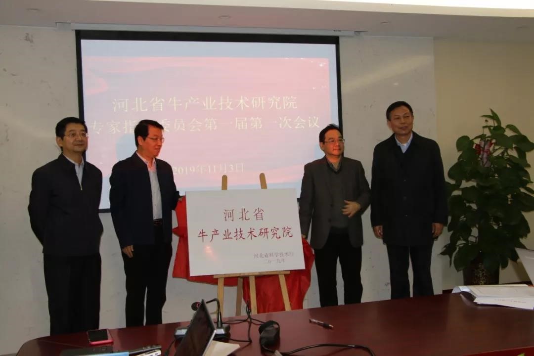 2019年11月3日,河北省牛产业技术研究院启动大会暨理事会第一次会议在石家庄天泉良种奶牛有限公司召开。河北省农业农村厅副巡视员顾传学、河北省农业农村厅总兽医师赵彦岭、河北省农业农村厅畜牧业处处长陈东来、河北省科技厅正处级调研员李同正、河北省科技厅调研员郭卫东、石家庄市科技局局长王雁南等领导,以及国家肉牛牦牛产业技术体系首席曹兵海教授、中国农业大学张沅教授、中国农业大学张胜利教授、中国农业科学院朱化彬教授、中国农科院主任孙宝忠、吉林农业大学副校长张越杰教授、河北省奶牛创新团队首席专家倪俊卿、河北农业大学李建国教授、河北省畜牧兽医研究所安永福研究员、加拿大太平洋遗传育种中心(CPGC)董事长Rich anderwal、美国萨瓦格洛农业及生物技术顾问公司(SAWAGRO LLC)董事长吴卫东、吉林大学张嘉保教授、华中农大动科院主任杨利国教授、中国科学院北京遗传所主任吴德国、河北省牛产业技术研究院院长李树静、河北北方学院岳春旺教授及岗位专家余文莉等20多位国内外知名专家出席了本次会议。
