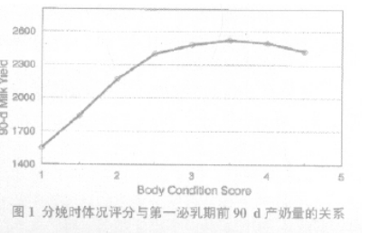 当体况评分从 1 到 3 时, 产奶量快速增加, 到大约 3.5 时达到峰值, 当体况评分大于 3.5 时, 产奶量开始下降。从上述研究结果可以看出后备奶牛体况评分过高,不利于产后食欲的快速恢复,降低生产性能,增加产生代谢问题的危险。