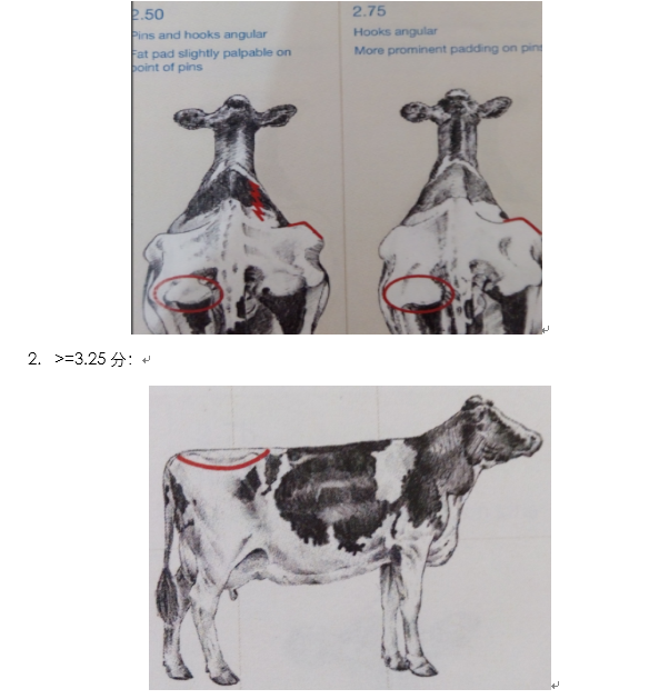 (3)若如果髂骨结节处有角度、坐骨结节处稍有脂肪覆被,腰椎横突明显,则2.50分;