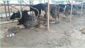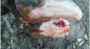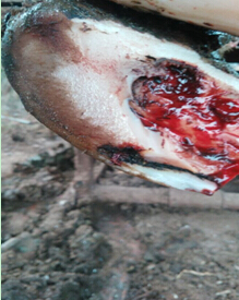 牛床、运动场不平整或煤渣、石子、砖瓦块等坚硬异物引起蹄伤,致使蹄受坏死杆菌、链球菌、化脓性棒状杆菌、结节状梭菌等病原菌的感染。
