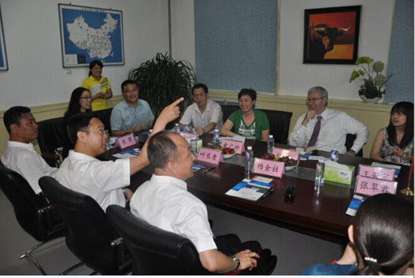 2014年7月17日,加拿大驻华大使Saint-Jacques Guy先生及大使秘书王若宇女士和随行人员原萍女士在河北省省外事办主任杨全社、河北友协执行副会长叶长青、河北省外办美洲处处长王涛、鹿泉市副市长王志勇等的陪同下参观考察了国家肉牛牦牛技术体系石家庄综合试验站。李树静博士代表余文莉站长向大使就所做的工作做了详细的汇报,李树静博士介绍说,石家庄综合试验站除负责完成国家肉牛牦牛技术体系分配的工作之外,在2012-2013年,两年共投资1400万元以上从加拿大和澳大利亚等国进口纯种西门塔尔和和牛等肉牛胚胎1100枚以上,90%以上的胚胎在本场开展胚胎移植,所产后代母牛销往全国十几个省市自治区公牛站和良种场,本场现存纯种西门塔尔和和牛600余头。除此以外,还负责中国95%的奶、肉牛胚胎进口,75%以上的奶、肉牛胚胎移植项目以及10%以上的奶、肉牛冻精进口工作。同时,我站已于今年6月启动了引进加拿大、美国顶级黑安格斯胚胎900枚以建立北美品系的黑安格斯牛育种核心群的项目,并对该项目的进展情况做了汇报。最后李树静博士呼吁中加两国政府应共同努力,尽快放开加拿大地区的活牛进口,同时增加政府支持的中加国际合作技术培训项目。大使先生一行认真地听取了公司董事长李树静博士就公司概况、取得的业绩以及未来发展规划所做的汇报,汇报结束后大家热烈讨论了李树静博士的汇报内容,并充分肯定了本公司取得的成绩,大使先生也就其中的一些情况进行详细的询问和记录,并就一些问题交换意见并取得共识。大使先生特别对李树静博士介绍OPU技术(活体采卵技术)可以使一头母牛的繁殖后代由自然繁殖5-6头后代增加到500-600头后代的事情感兴趣,对李树静博士用汉语说道:“希望我能帮上你的忙”。同时表示在中国和加拿大在该方面已经取得很多成就基础上,继续支持开展及扩大两国间的国际交流与合作。最后大使期待近期到访中国的加拿大农业部部长和总理能再次参观考察该公司,并出席即将成立的中加合作牛繁育工程技术中心开幕式。