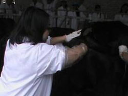 在实习期间,基地在保障学生实习安全的前提下,丰富实习内容,将一般劳动和专业技能的学习相结合,同学们在工作人员的带领下分为三组分别对肉牛场饲养管理,牛胚胎移植等方面进行了详细的实地参观和实践操作。同学们亲自进行了直肠把握、超数排卵和同期发情激素的肌肉注射、采血等常规操作,并通过母牛生殖器官模拟操作人工授精和胚胎移植。遗传育种方面的专家亲自讲授加拿大、美国、欧洲不同育种体系的牛系谱登记制度及直接从专业网站下载世界名牛的系谱教大家解读。“真的学到了在书本和学校没有学到过的知识。”同学们纷纷感叹道。