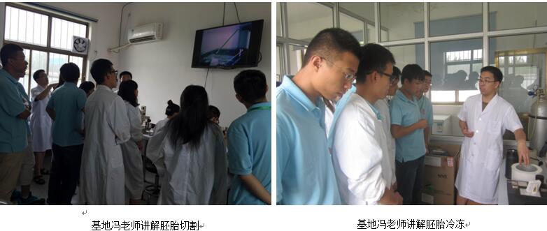7月6日, 44名优秀学子在动科院研究生教务管理处徐老师的带领下,来到国家肉牛牦牛产业技术体系石家庄综合试验站依托单位--河北天和肉牛养殖有限公司进行活动交流。学生首先分批来到实验室观看胚胎生产操作。基地冯春涛老师向学生们介绍胚胎生产各个环节,并让学生们在显微镜下观看胚胎。学生们认真听讲解,兴趣浓厚,围绕胚胎性别控制、胚胎切割、胚胎体外停留时间、胚胎冷冻最长保存时间、胚胎冷冻原理、胚胎分割后犊牛成活率等问题一一提问,即使规定的时间到了还是不舍离开实验室,每次都是徐老师带领下一批学生进实验室,前一批学生才离开。实验室交流结束后,基地蔺慧良老师带领学生们来到生产区,为学生们一一介绍生产区各个岗位,分别讲解基地不同品种肉牛特征特性、饲草鉴定方法、饲料原料鉴别、TMR日粮加工程序及犊牛饲养等内容。在讲解过程中,学生们围绕牛投料、饮水、垫料、排水、牛粪处理、预混料、精料、工人每天工作流程等问题踊跃提问,同时对和牛育肥方式、出肉率、有没有做过和牛和其他品种牛杂交培育自己高端牛肉品种牛兴趣浓厚。对于西门塔尔牛有没有挤奶,对于兼用型牛更应该发挥哪种性能最能体现经济价值等问题展开讨论,同时再一次提出肉牛双犊问题。学生们的问题不仅广、宽,而且深入到位,还能从牛场效益角度考虑问题,这些都出乎基地老师们的意料。学生们提问前必以“老师,您好”开始,提问后又以“谢谢老师”结束,彬彬有礼的举止和教养给基地老师们留下深刻的印象。同时,他们求知欲强,提问精准到位,以批判性的思维对待新鲜事物,这一切都让老师们深感欣慰,也感叹后生可畏!