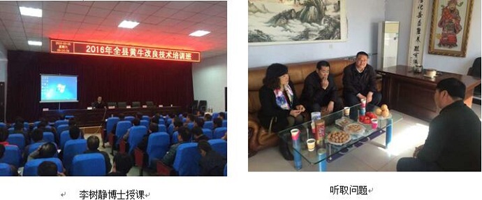 2016年3月4-5日,国家肉牛牦牛产业技术体系石家庄综合试验站依托单位---河北天和肉牛养殖有限公司董事长李树静博士和承德隆化县畜牧局联合对当地肉牛养殖场(户)负责人或繁育技术人员开展黄牛改良技术培训,总计75人。李树静博士从牛繁殖机理、人工授精技术、产后护理及犊牛护理进行讲解,受到学员一致好评。培训结束后,在承德市家畜改良站李素梅副站长和隆化县改良站刘会军站长陪同下,李树静站长参观并指导了隆化县益佳养殖有限公司西门塔尔繁育场和隆化凤林养殖责任有限公司,就两场的黄牛繁殖问题、黄牛育肥技术和有机肥制作进行了现场指导。承德隆化凤林养殖有限公司育肥本地黄牛,每年年出栏量5000-6000头,体重在650公斤左右,每头牛利润在1000-1500元;同时利用日本进口菌种通过对牛粪便发酵和添加微量元素加工制作颗粒肥和面肥,其中颗粒肥每吨出售800元,面肥每吨400元,利润可观。畜牧业粪污处理不但是畜牧业生产上的问题,也是整个生态环境和健康养殖的大问题。